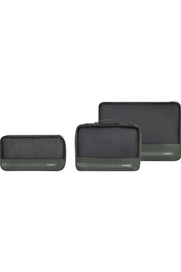 Zestaw 3 organizerów do pakowania bagażu.