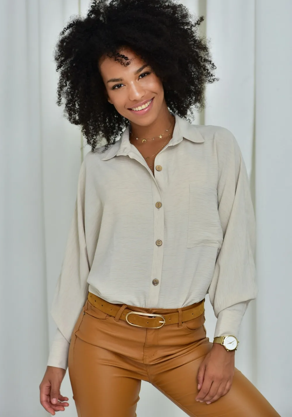 Uniwersalna koszula w kolorze ecru. Zapinana na guziki oversize’owa koszula może być bazą wielu różnych stylizacji, casualowych i eleganckich. Jej fason dopasuje się do Twojej sylwetki i podkreśli jej atuty. Połącz koszulę z modnymi, skórzanymi spodniami i zamszowymi szpilkami, a stworzysz nietuzinkową stylizację na co dzień. Skład: 95% POLIESTER , 5% ELASTAN XS S M L 1/2 BIUST oversize oversize oversize oversize 1/2 TALIA oversize oversize oversize oversize 1/2 BIODRA 55 57 59 61 RAMIĘ+RĘKAW 68 69,5 71 71 DŁUGOŚĆ 64 65,5 67 68,5