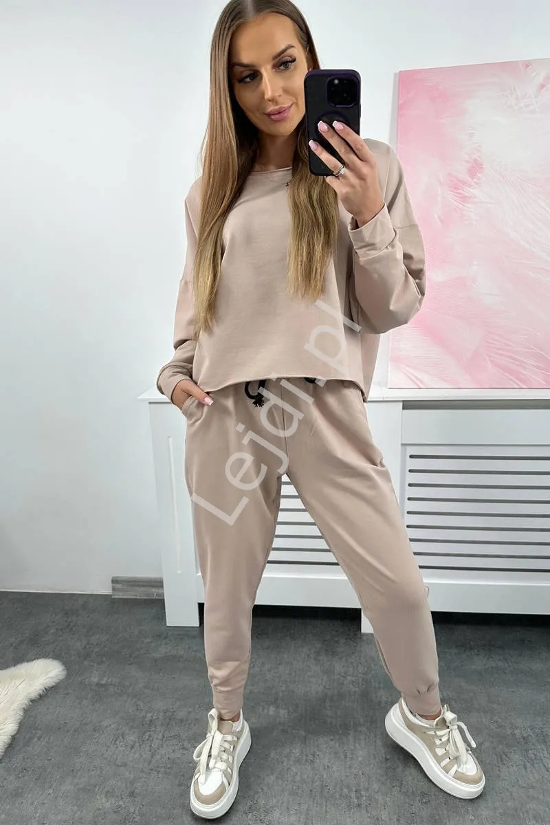 Oversizowy beżowy komplet dresowy, luźne dresy damskie Best you can 9456