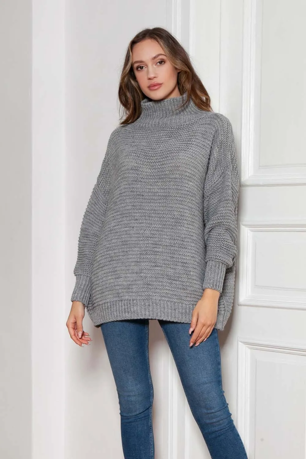 Oversizowy Sweter z Luźnym Golfem - Szary