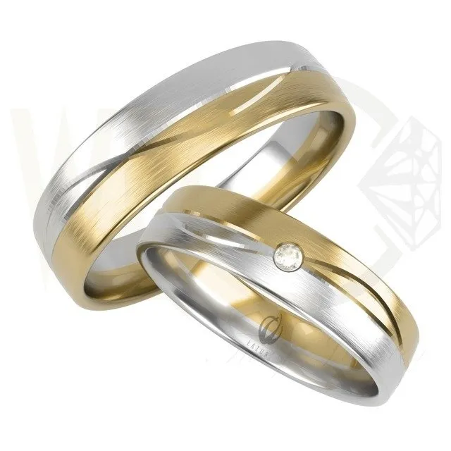 Para obrączek, damska z cyrkonią. Oprawa nr. 1, cyrkonia 1×1,75mm, meska bez kamieni. Środek soczewka.