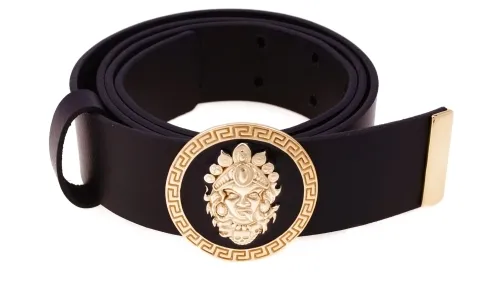 Najnowsza kolekcja! Skórzany pasek z ręcznie tworzoną, kwadratową klamrą pozłacaną. Motyw hinduskiej bogini Kali. Długość 105cm, szerokość 3,3cm, klamra 5,2cm x 5,2cm, grubość 0,3cm.