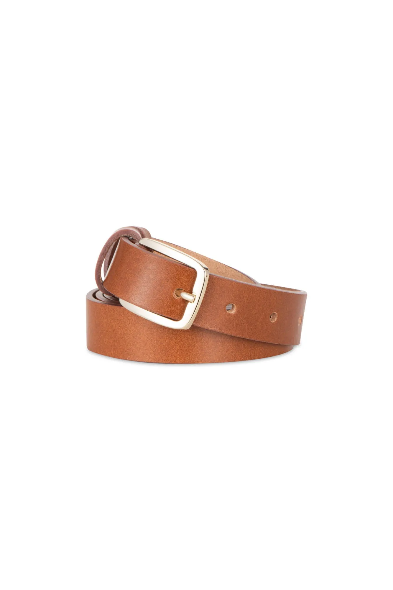 PASEK DAMSKI SKÓRZANY - 25mm - brąz - złoto - ROZMIAR M - obwód paska po zapięciu 69-86cm
