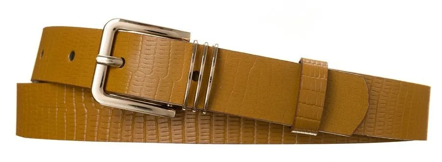 Niebanalny pasek damski wykonany z wysokiej klasy bydlęcej skóry naturalnej i solidnych metalowych elementów. Posiada srebrną metalową klamerkę w prostokątnym kształcie. Na skórze tłoczenia imitujące skórę węża. Możliwość samodzielnego skrócenia paska.