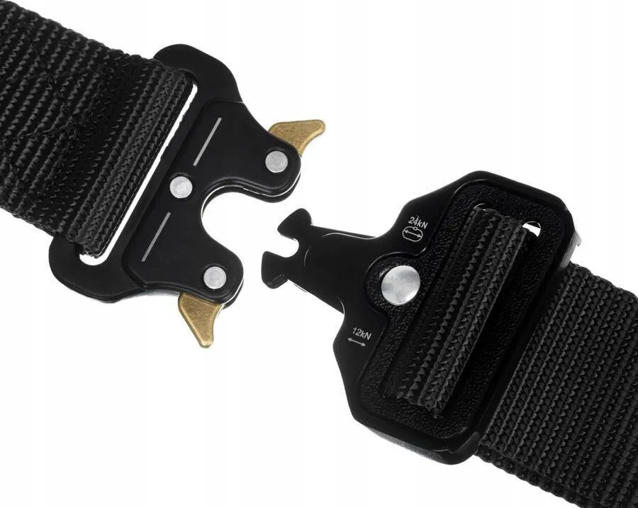 Wykonany z taśmy poliestrowej o wysokiej odporności na przecieranie i rozrywanie. Klamra typu Quick Release, której konstrukcja pozwala na błyskawiczne zapinanie i rozpinanie paska. Sprawdzi się zarówno jako pasek do bojówek i jeansów.