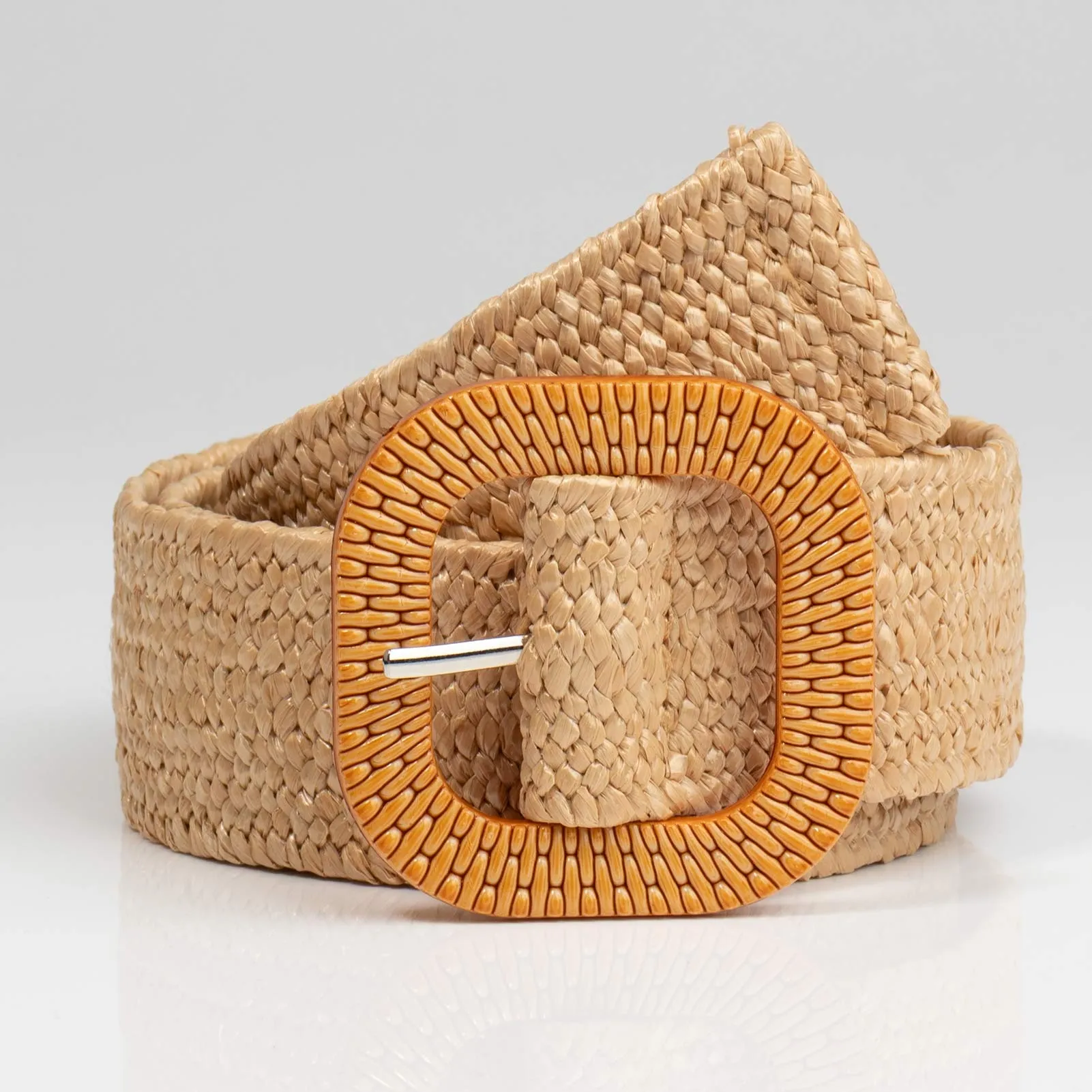PASEK pas damski PLECIONY elastyczny rafia do sukienki SŁOMIANY PARCIANY