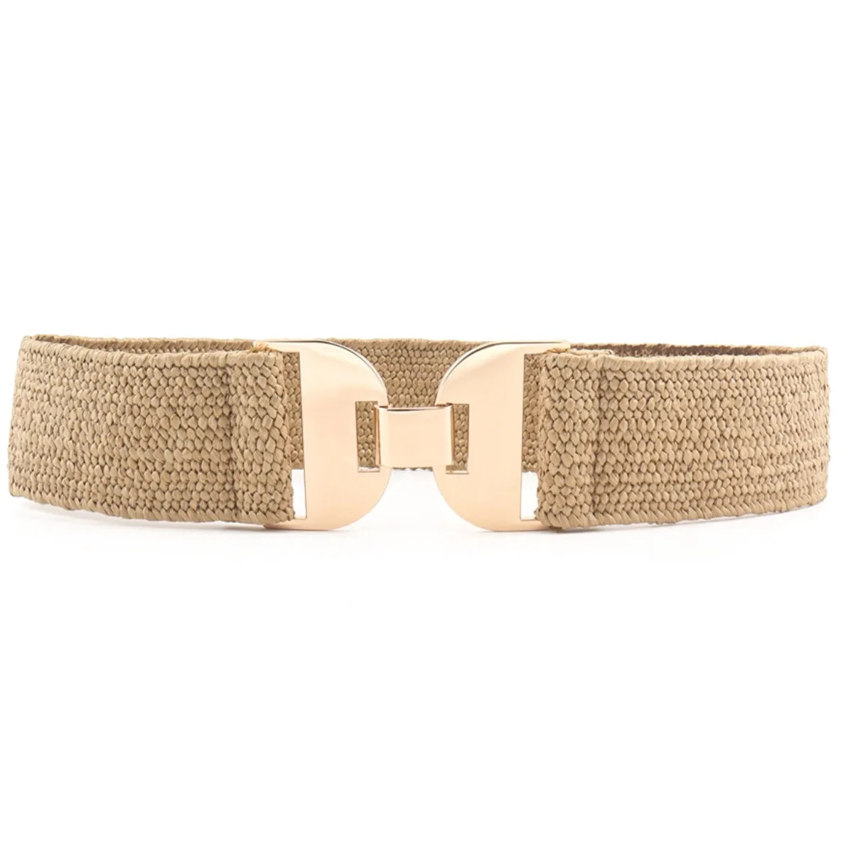 PASEK PLECIONY damski Alessio słomiany BEŻOWY ELASTYCZNY LATO rozmiar M