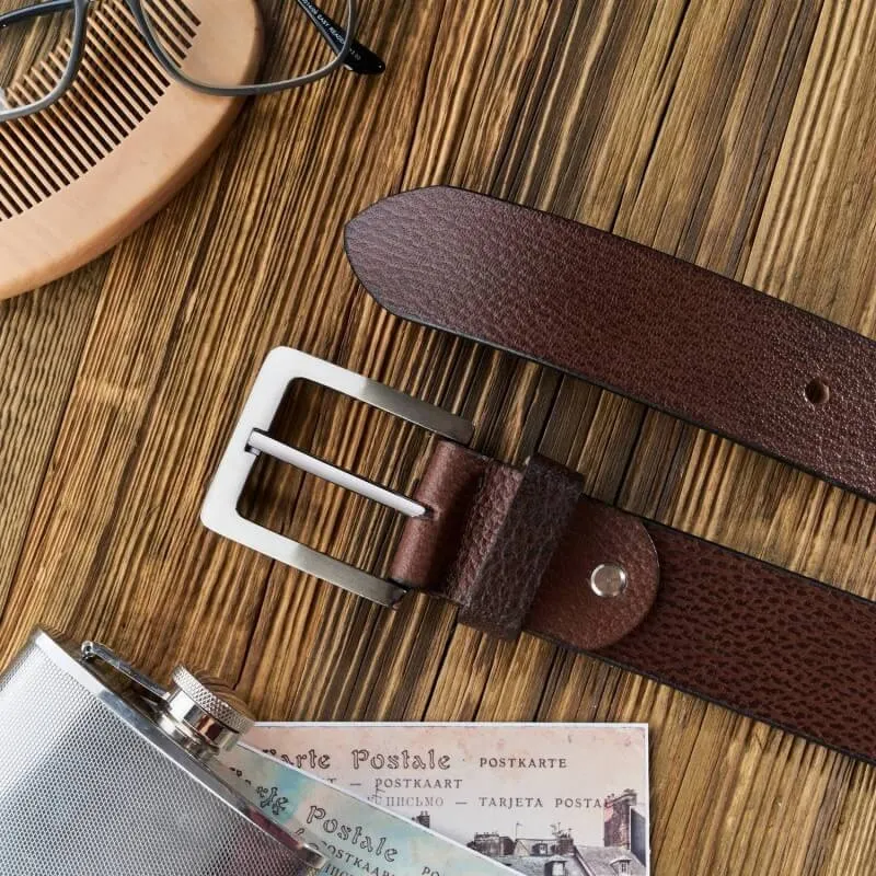 Czarny pasek wykonano ze skóry naturalnej. Prosta stalowa klamra utrzymana w postarzanym stylu vintage z zarysowaniami na froncie nadaje akcesorium codziennego charakteru. Pasek jest zapakowany w sztywne pudełko prezentowe z logiem producenta na froncie.