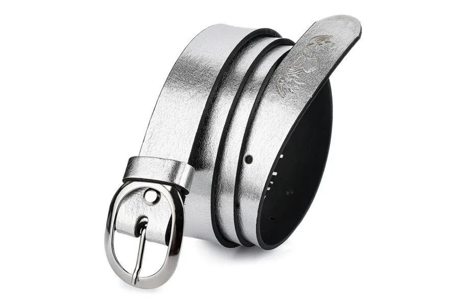 Beltimore skórzany damski pasek do spodni 3 cm srebrny U48 : Kolory - szary, srebrny, Rozmiar pasków - r.105-120 cm