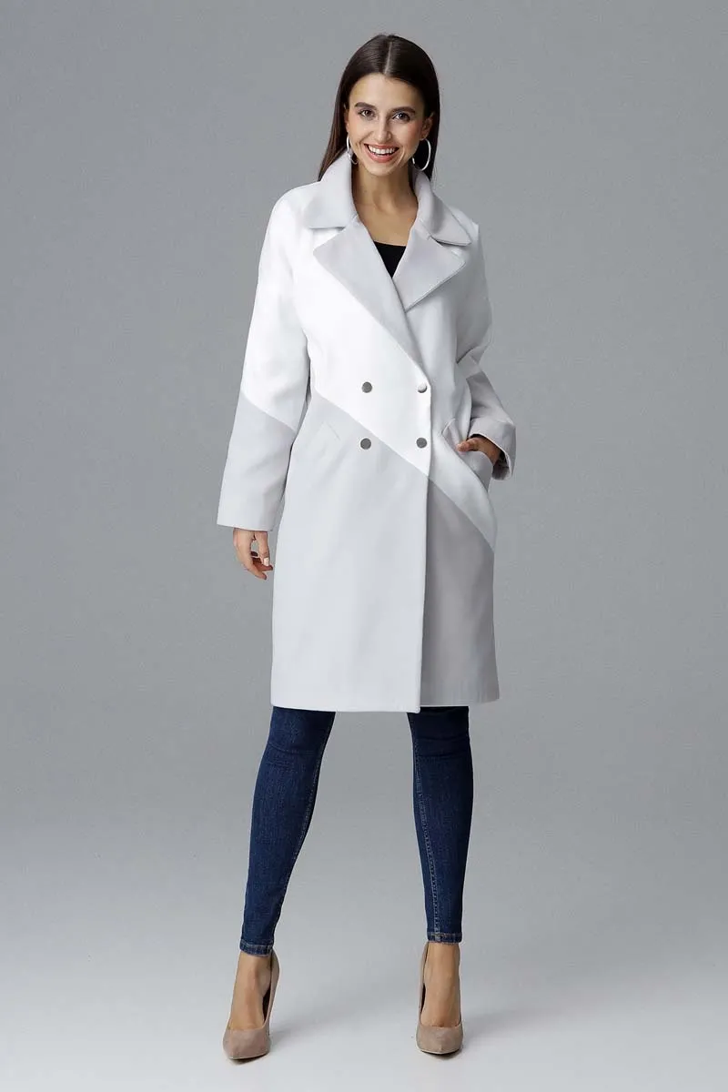 Szaro Biały Dwukolorowy Płaszcz Dwurzędowy
