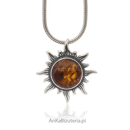 Srebrne słoneczko z bałtyckim bursztynem z inkluzjami - wisiorek