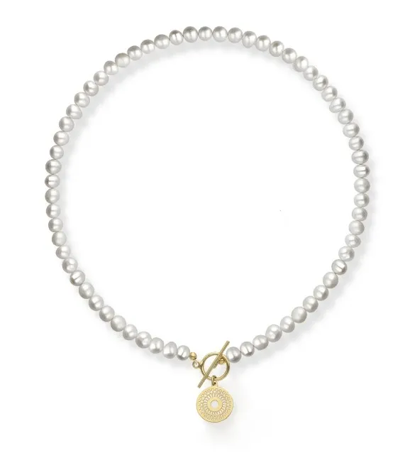 Naszyjnik srebrny z pereł naturalnych z pozłacanym ażurem