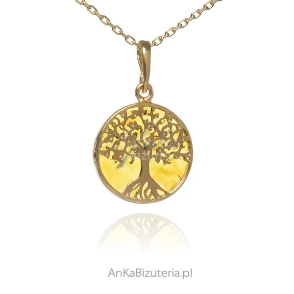 Piękne pozłacane drzewko szczęścia z bursztynem średnia - srebro pr. 925