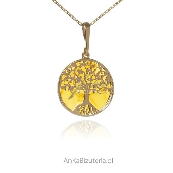 Piękne pozłacane drzewko szczęścia z bursztynem duża - srebro pr. 925