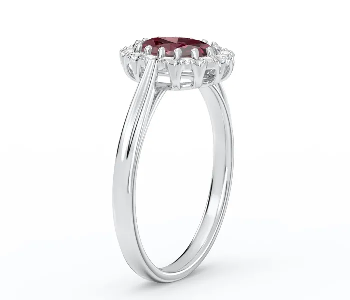 Pierścionek markiza z białego złota z rubinem i diamentami 0,21 ct wzór BP-12B
