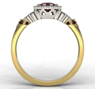 Pierścionek z żółtego i białego złota z rubinem i cyrkoniami LP-65ZB-C