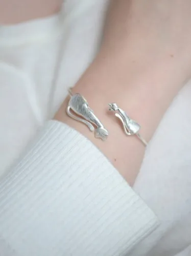 Bransoletka srebrna - Mały i duży kot biały