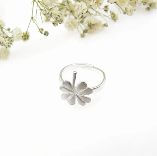 Niezwykle efektowny i bardzo kobiecy pierścionek w kształcie kwiatuszka o sześciu wywiniętych płatkach, z malutką białą cyrkonią umieszczoną w środku. Pierścionek wykonany ze srebra, następnie pokryty oksydą i wypolerowany. Szerokość kwiatuszka 2 cm, szerokość obrączki 3 mm. Waga pierścionka 5,5 g Pierścionek z regulowaną obrączką. Nr katalogowy :KW5PC