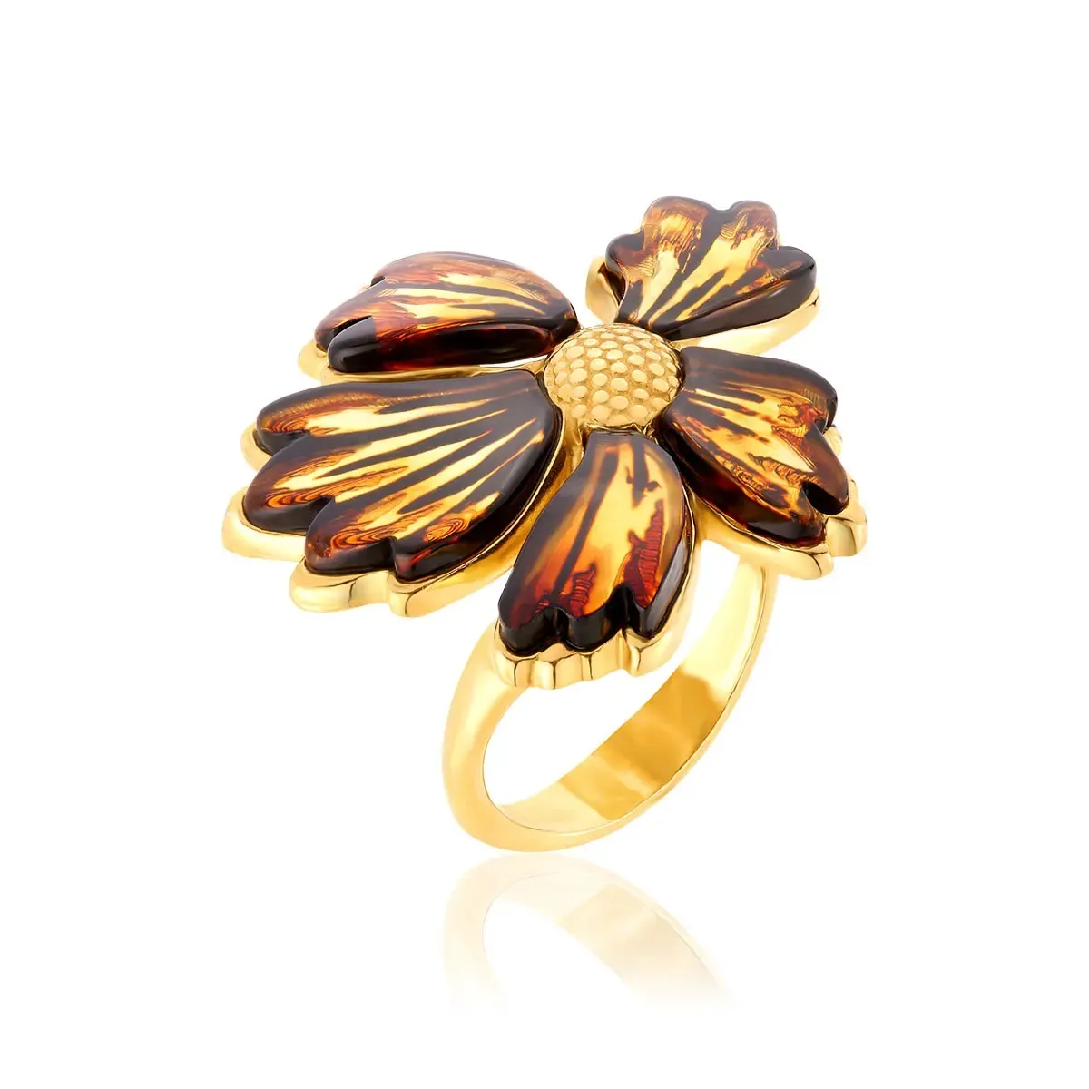 Pierścionek srebrny motyl z bursztynem big Butterfly Touch