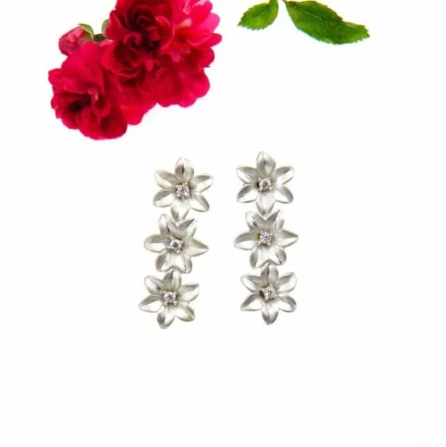 Kolczyki srebrne - Niezapominajki trzy II satynowe sztyft