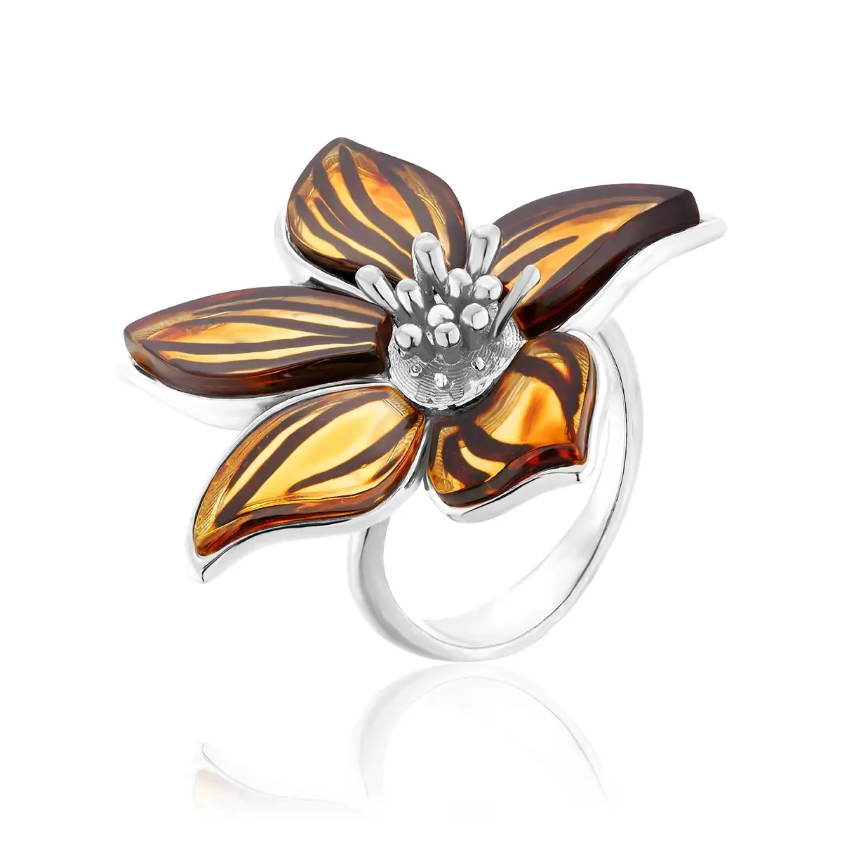520,00 złPierścionek srebrny pozłacany kwiat z bursztynem