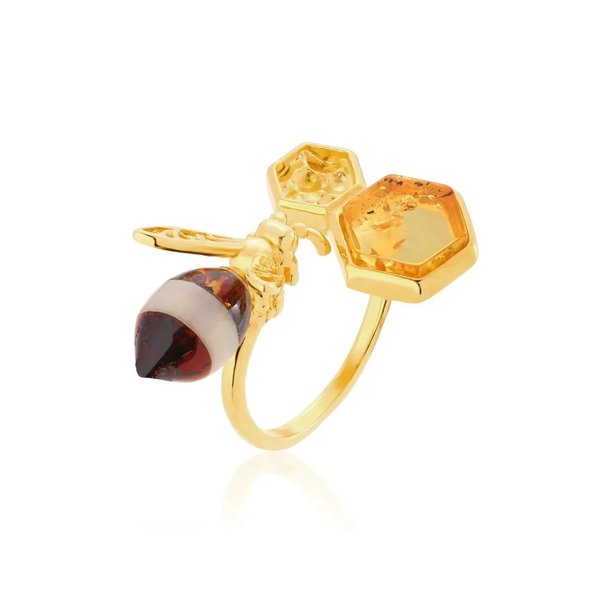 Pierścionek srebrny pozłacany z malachitem Royalty – 20