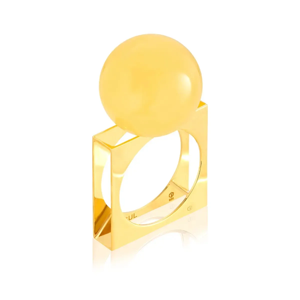 Pierścionek srebrny pozłacany z mlecznym bursztynem QLKA - 20
