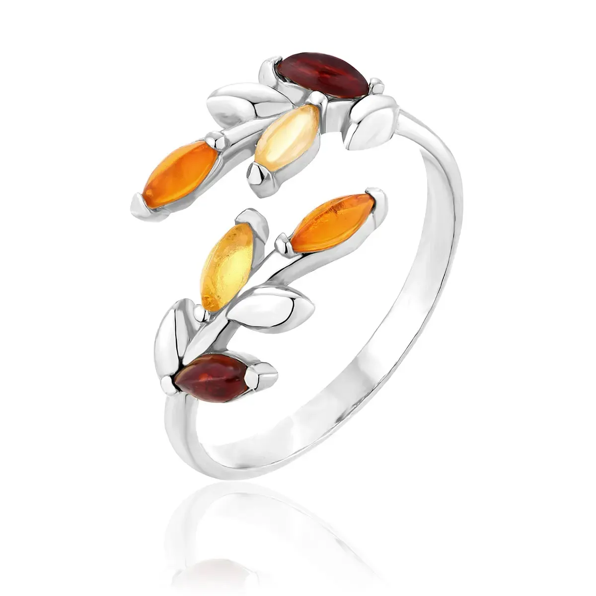 Pierścionek srebrny rodowany z kolorowym bursztynem Linda