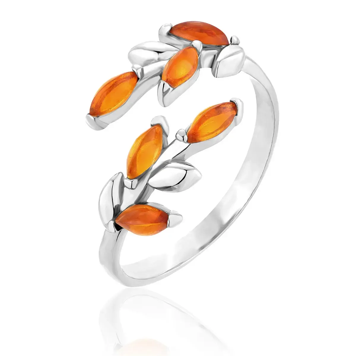 Pierścionek srebrny rodowany z koniakowym bursztynem Linda