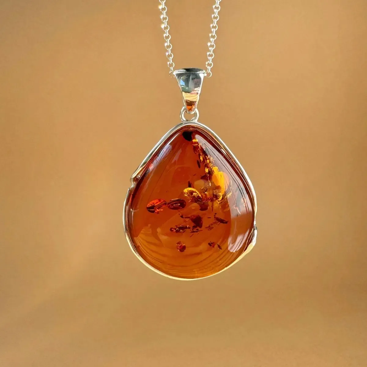 Wisiorek srebrny z koniakowym bursztynem no 12