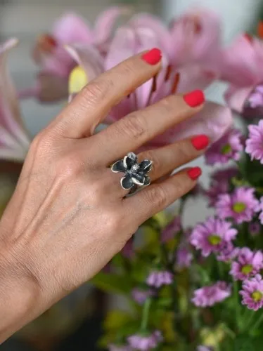 Pierścionek srebrny z Kwiatem Szarej Magnolii medium