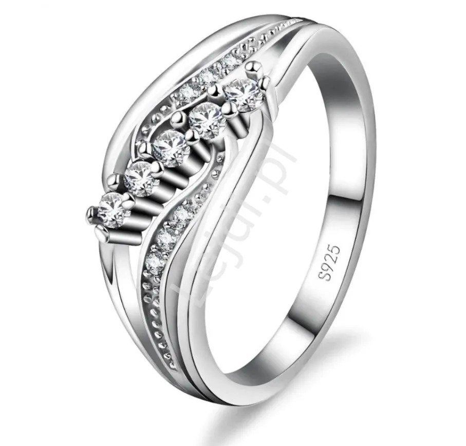 Pierścionek w kolorze srebrnym z eleganckim zdobieniem cyrkoniami
