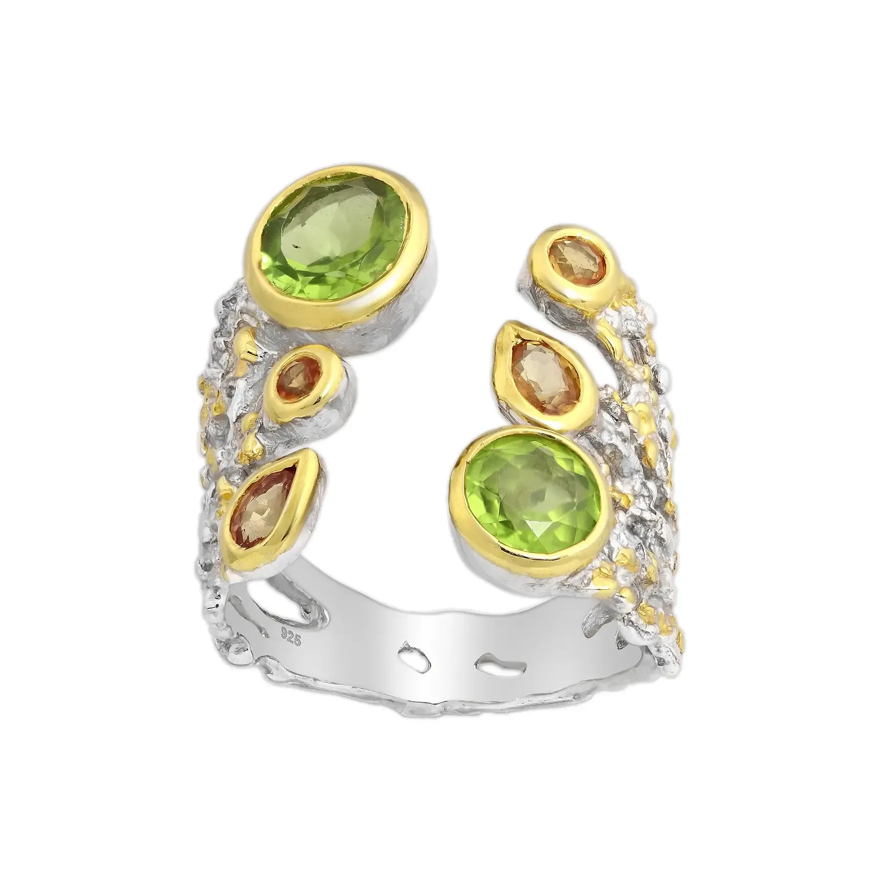 Srebrny pierścionek z Peridotami i Szafirami - Europa 17, US 8