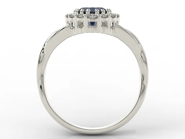 Pierścionek w kształcie serca z białego złota z szafirem i cyrkoniami AP-77B-C