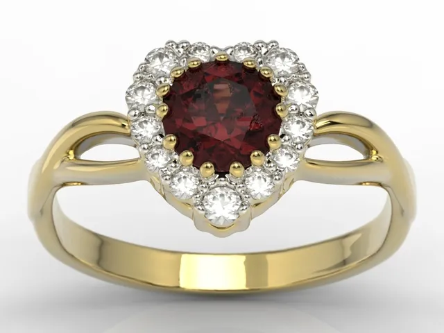 Pierścionek w kształcie serca z żółtego złota z granatem i cyrkoniami AP-77Z-C