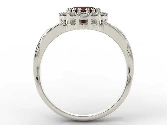 Pierścionek w kształcie serca z białego złota z granatem i cyrkoniami AP-77B-C