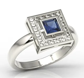 Pierścionek z białego złota z szafirem i diamentami LP-68B