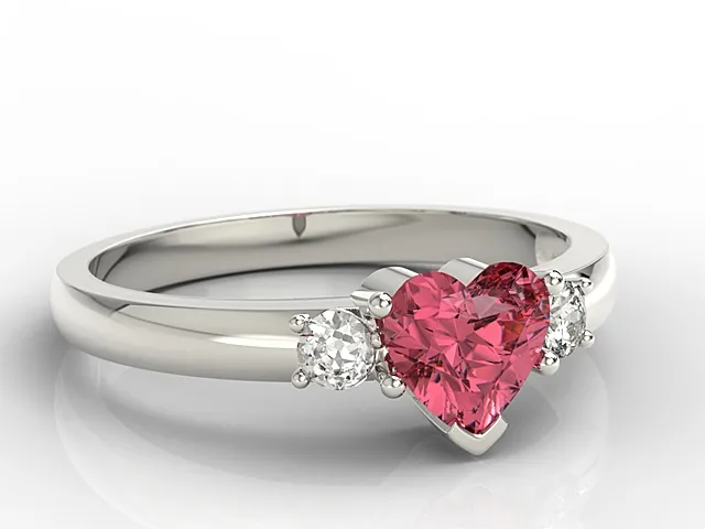 Pierścionek z białego złota z czerwonym topazem w kształcie serca i cyrkoniami JP-90B-C