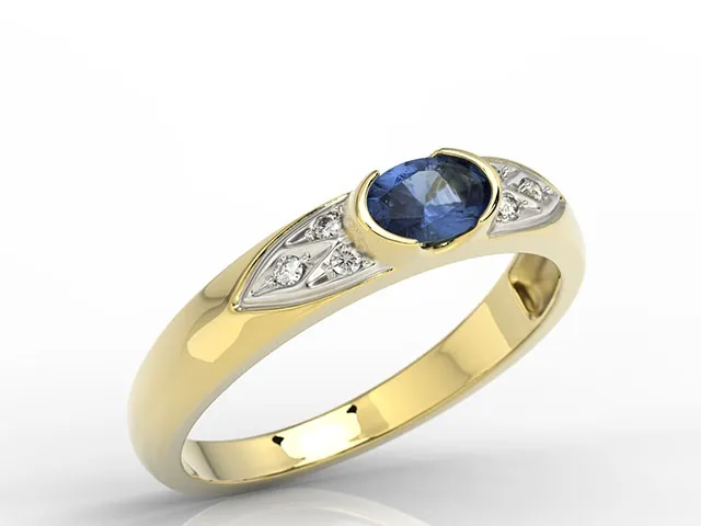 Pierścionek z żółtego złota z szafirem i diamentami 0,06 ct model AP-80Z