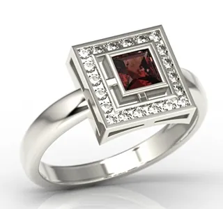 Pierścionek z białego złota z granatem i diamentami LP-68B