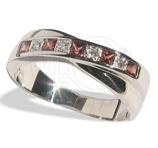 Pierścionek z białego złota z granatami i diamentami JP-36B