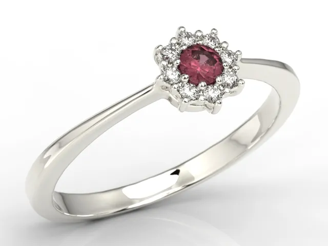 Pierścionek z białego złota z rubinem i diamentami JP-49B