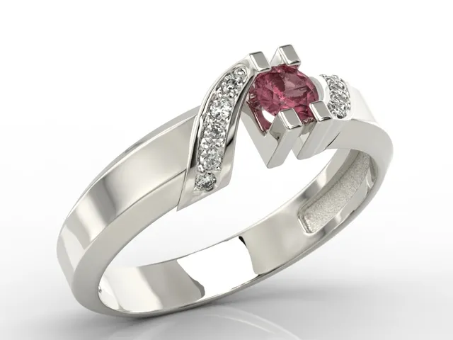 Pierścionek z białego złota z rubinem i diamentami JP-66B