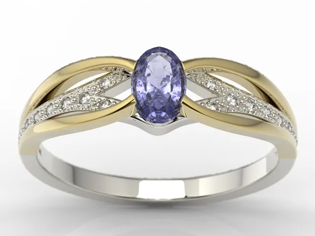 Pierścionek z białego i żółtego złota z tanzanitem i diamentami LP-39BZ