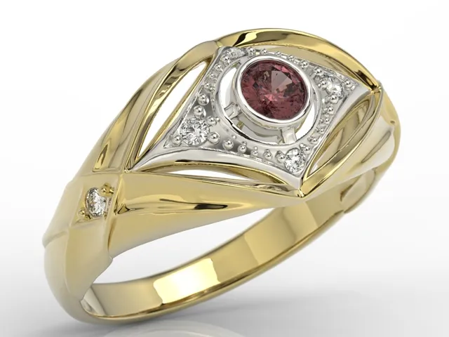 Pierścionek z żółtego i białego złota z granatem i brylantami AP-9908ZB