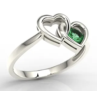 Pierścionek w kształcie dwóch serc z białego złota ze szmaragdem LP-52B