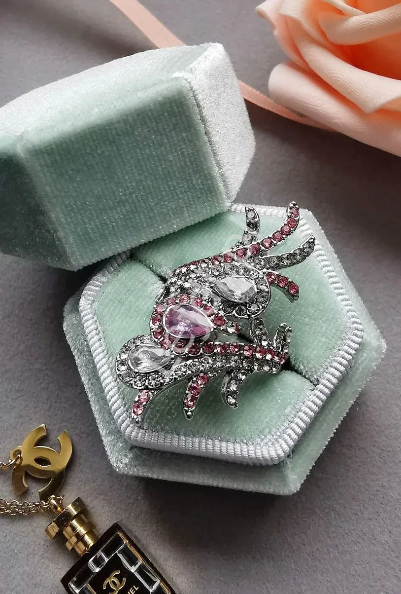 Pierścionek damski z dużymi łezkami różowo kryształkowy