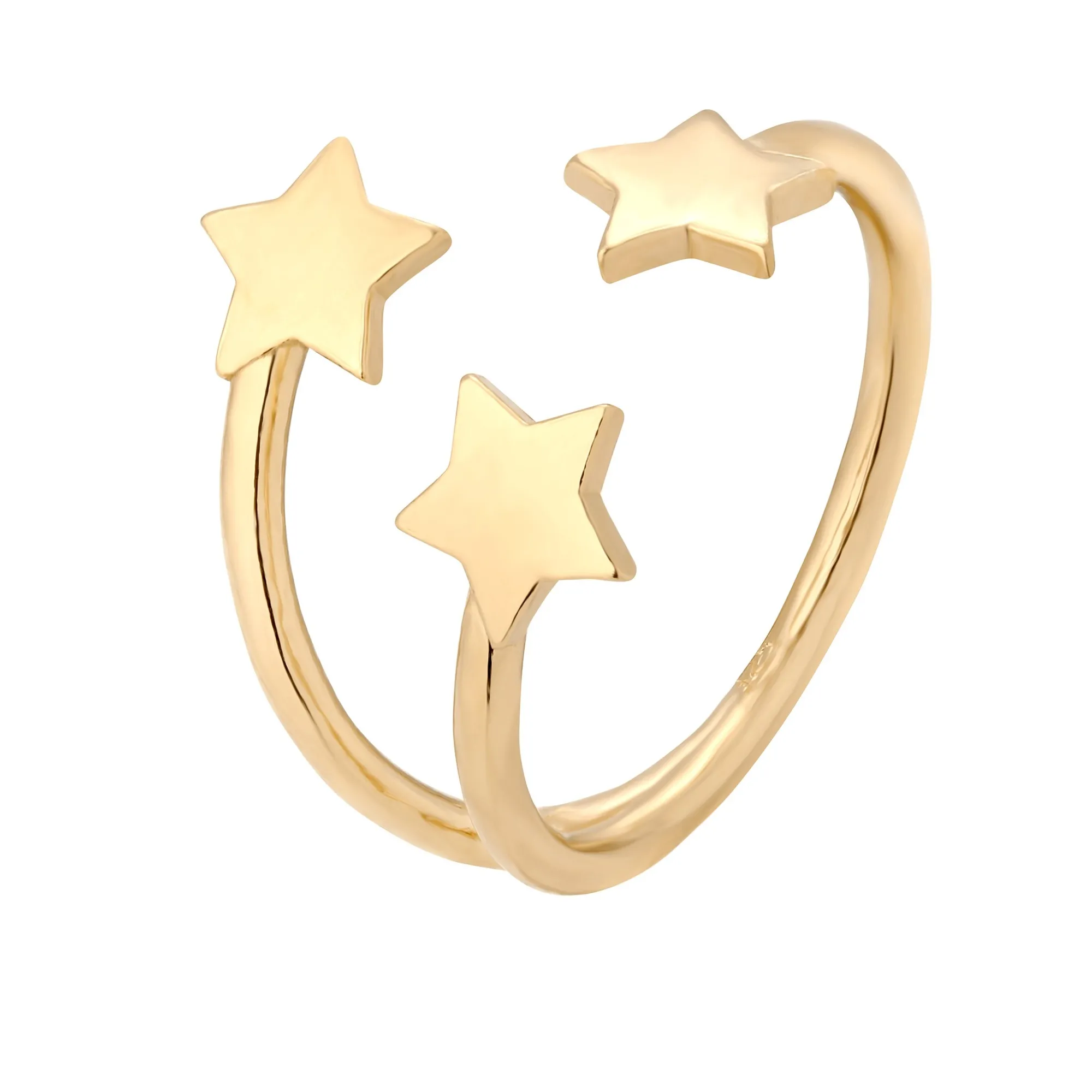 Złoty pierścionek z gwiazdkami wykonany ze srebra 925 powlekanego 24 karatowym różowym złotem. Pierścionek dopasowuje się do rozmiaru palca poprzez delikatne rozginanie lub dociskanie obręczy. Rozmiar uniwersalny Wysokość ozdoby 15 mm Gwiazdka 6 mm Produkt o wadze poniżej 5 g. Zapakowany w eleganckie pudełeczko z logo marki. Posiada logowana metkę. Istnieje możliwość zamówienia pierścionka ze srebra 925 lub srebra 925 powlekanego 24 karatowym żółtym złotem.