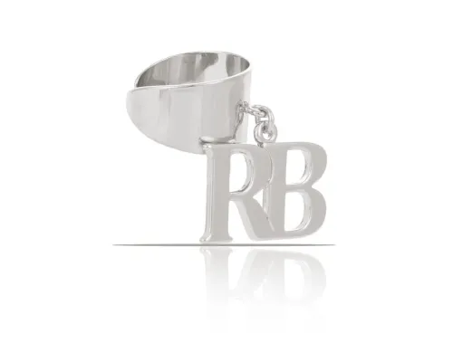 Posrebrzany pierścionek z okrągłą ozdobą i kółkami w środku. Pierścionek posiada regulację. Średnica ozdoby ok 2,3 cm.