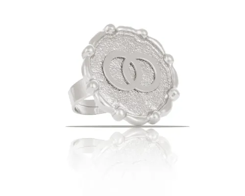 Regulowany, posrebrzany, ręcznie malowany na biało pierścionek zdobiony kryształkami Preciosa. Średnica elementu ozdobnego ok 3 cm.